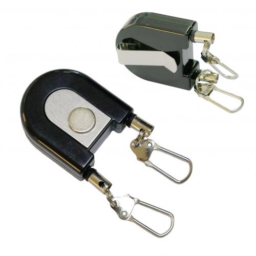 Retriever with 2 carabiners with belt clip and fly magnet.
