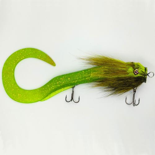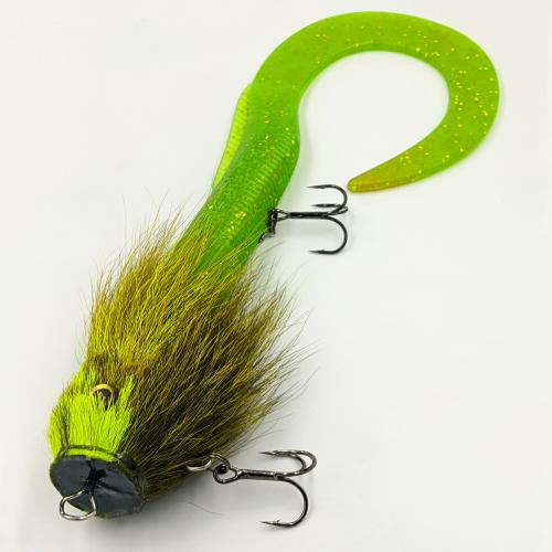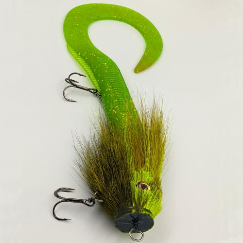 This bait consists of two parts: a head tied from the tail of an American deer and a silicone tail.