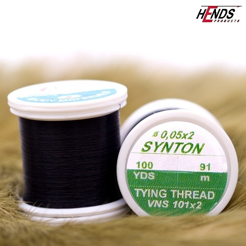 Монтажная нить Synton от компании Hends Products представляет собой очень тонкое монофильное микроволокно, намотанное на катушку вдвойне, так что получается нить из двух монофильных волокон. Такая нить пользуется очень большой популярностью у чешских вязальщиков мушек, поскольку она тонкая и незаметная, но при этом очень прочная. С ее помощью можно вязать самые мелкие мушки, хотя есть вязальщики, которые используют эту нить на все виды мушек.У самых маленьких мушек с помощью этого материала можно изотавливать и тело мушки, которое при намокании становится полупрозрачным.