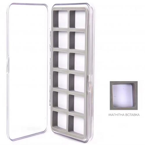 Кробка з прозорою карболітовою кришкою, виготовлена з якісного пластику, має 12 відділень розділених піною Easy Grip