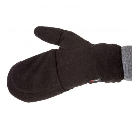 Модель багатоцільового призначення, здатна завдяки відкідним верхнім частинам швидко перетворитися в рукавиці з відкритими пальцями. Матеріал Polartec® Windbloc® , хоч виглядає як звичайний фліс, насправді містить всередені поліуретанову мембрану, що надійно захищає ваші руки від холоду, вологи і вітру. Додаткове вологовідштовальне просочення DWR, фіксація відкидних частин з допомогою застібки-кнопки, легке зняття рукавиць завдяки спеціальним елементам-петлям. Використана надміцна еластична нитка COATS, що збільшує надійність.