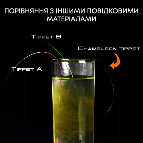 Повідковий матеріал STRIKE Chameleon Invisible. Особливостями цього довідкового матеріалу є те що він має спеціальне забарвлення, яке не відлякує рибу. Основною перевагою його є дуже висока міцність. Порівняно з іншими повідковими матеріалами він на 30% міцніший. Може використовуватись не тільки для нахлисту, а також для інших видів риболовлі.