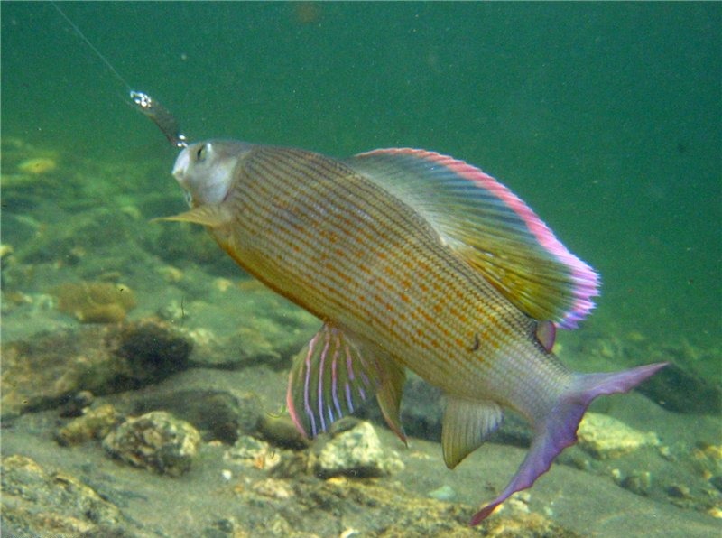 Швидше автоматично, ніж усвідомлено, зробив м’яку підсічку. У перший момент – відчуття того, що я зачепив мушу, але потім відчув велику рибу. Через хвилину в підсак вліз майже 400-грамовий харіус. Підлісок зник у роті, мушки не видно. Риба так глибоко заковтнула її, що навіть за допомогою корнцанга я насилу витягнув мушку. Відправивши харіуса в кошик, ретельно промив мушку в воді, висушив холостими закидами, знову обробив силіконом і почав шукати іншу рибу, яка піднімаються з дна.