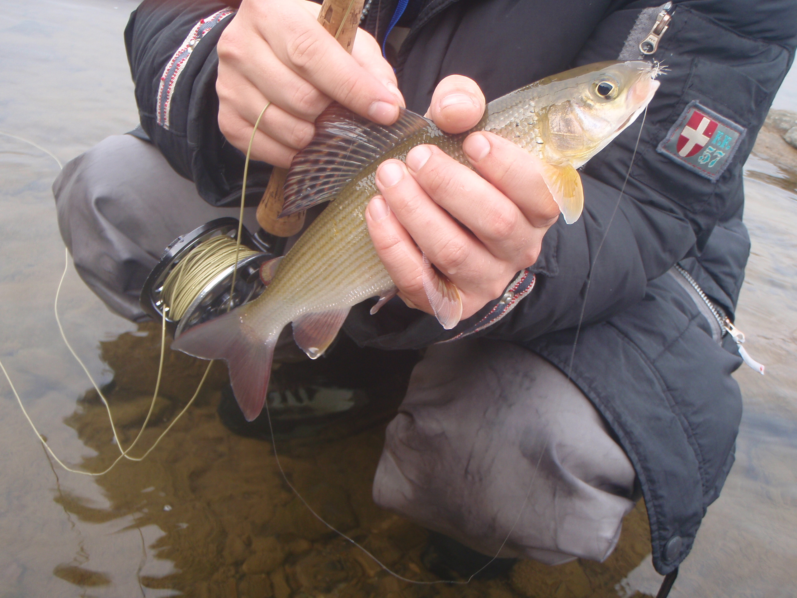 Отже, сіра мушка тихо упала на воду. Дві-три секунди і перший харіус вискочив з ями. Це означає, що риба не лише гріється на мілині, але й може триматися більш глибоких і холодних місць. Яма виявилася багатою. Усі харіуси одного розміру, близько 25-и сантиметрів. Чергова пропозиція мухи мене шокувала. На неї вийшла риба набагато більших розмірів. По-дельфінячому величезна коричнева спина забрала мою приманку і зникла. Від несподіванки я повторив стару помилку – різко смикнув вудкою догори… Результат відомий. І трофея не упіймав, і, безперечно, сполохав усю рибу в радіусі кількох метрів. Швидко повертаюся на перший перекат. Харіуси продовжують брати, але мені з очей не сходить та сама коричнева спина. Хвилин за 10 тихо підходжу до ями – виходів стало значно менше, риба налякана і сховалася під камінням. Часу у мене залишається небагато – йду далі. Пробую ловити на більш спокійній течії – харіус сидить і тут. Бувало, що на чудесному перекаті вдавалося зловити лише одну рибу з першої проводки.