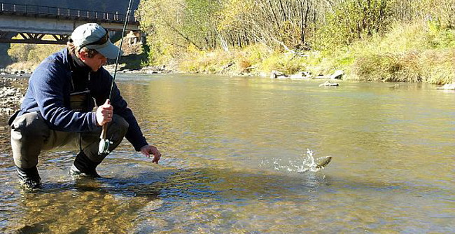В самому Сколе на прийшлося півтори години почекати на першу маршрутку до Гребенова, якраз за цей час встиг доїхати Паша та Ростик з Дімою. Вже на базі ми досить оперативно розклалися, випили першу пляшку і пішли на рибалку. Незважаючи на осінь, ранішній холод і тд. – рибалку можна назвати навіть дуже вдалою. Особисто в мене вже рівно о 10 ранку був перший харіус на суху, і потім теж ловилися і ловилися. В результаті в мене було 8 хвостів до 13 години. В хлопців теж було дуже незле. Хоча в нас – мене, Діми, Паші результат був кращий ніж у хлопців які ловили внизу ріки.