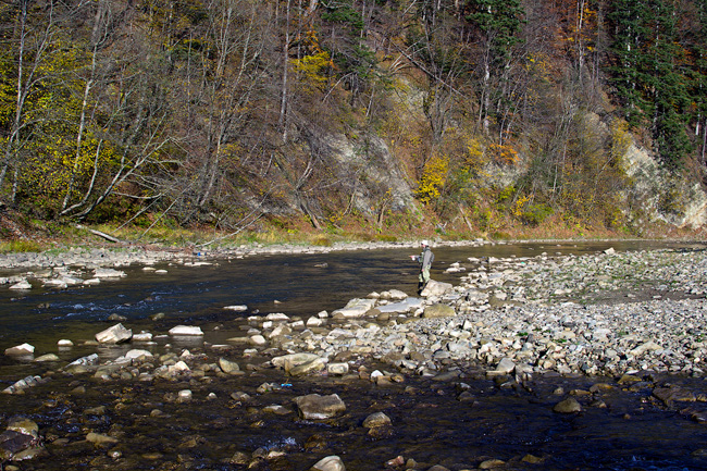 Моя маленька триденна феєрія почалася в п’ятницю, коли о 14:00 я вже втікав з роботи. Правда, як виявилося, виїхати в гори в такий час – справжня проблема. Чомусь я не подумав про те, що львівські вузи намагаються нашпигувати гранітні голови не лише місцевих, але й «доїжджєючих» студентів. З горем навпіл я таки впхався в маршрутку до Стрия. Разом з двома рюкзаками (теплий одяг на ніч, пляшка вина, станок і матеріали) усю дорогу простояв в навушниках. Володимир Висоцький співав про гори, а я рахував кілометри до них. В Стрию стрибаю в іншу маршрутку, яка їде на Сколе. Одразу ж за мною поїхав і Діма, з яким ми домовилися зустрітися в пані Марії, якій я замовив хату і вечерю. Зіскочивши з автобуса, я просто погнав перевдягатися: часу до темноти залишалося обмаль. Спакувавши маленьку сумочку всім необхідним, виходжу на Опір. Вода чистенька, що не може не тішити. Зважаючи на успіхи в попередніх рибалках, облаштовую француза шоколадкою і зеленим бокоплавом. Просто біля хати і роблю перші проводки. Упс…