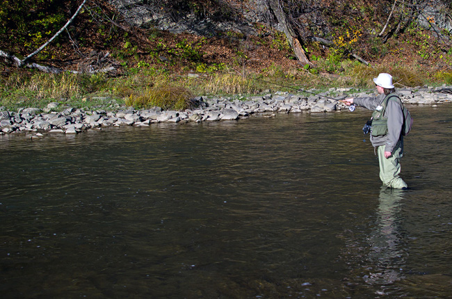 Я дуже люблю спілкуватися з Андрієм Сколівським. Він іноді говорить загадками, іноді щось не договорює, але мені це імпонує, так як загадки я люблю. Одного разу, роки два чи три тому, він сказав: «Коли після трьох проводок в мене нема покльовки, щось сталося». Тоді я був просто шокований почутим. На той час для мене один харіус в день – то було щастя, яке не опишеш в словах. Я міг годинами чекати на єдину покльовку. А йому, бачте, якщо після трьох не бере – то капець. Часи змінилися і завдяки постійному спілкуванню з колегами та їхнім порадам, вже і в самого почало щось виходити. В п’ятницю, після третьої проводки, я відчув, що починаю панікувати.