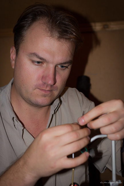Ми пересунули тумбочку – єдине, що було в хаті крім ліжок, на середину і приладнали станки. Я хотів заповнити свій новий флайбокс з трикутними вирізами від Strike робочими мухами, щоб не паритися з чотирма коробками, як це бувало на попередніх рибалках. Зрештою, це мені вдалося, після чого флайбокс став дуже симпатичним.