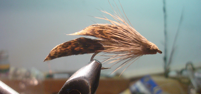 Е. Якщо планується застосовувати цю мушку з тонучим шнуром, то голівку набивають більш щільно. Це потрібно для того, що б при зупинці проводки стрімер повільно спливав, а при потяжці шнура рухався до дна.
