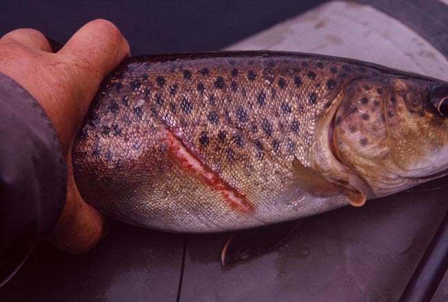 • Поранена риба втрачає сили при виважуванні, «обпалюється» руками і втрачає слизовий покрив – свою єдину оборону від грибків … І взагалі риба – надзвичайно крихка істота; варто їй попастися на вудку, і вона приречена. Тому той, хто відпускає рибу, губить її «мішками» – стільки, скільки йому вдається підвести до берега.