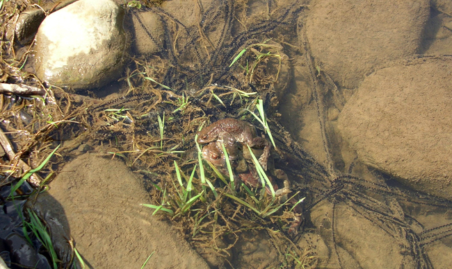 ПС. Вужів я бачив більше ніж риби. Їх там просто гать гати. А жаби взагалі організовують шведську сім”ю – по троє. На фото видно їхню ікру – як автомагістралі в розвинутих країнах (вид зверху).