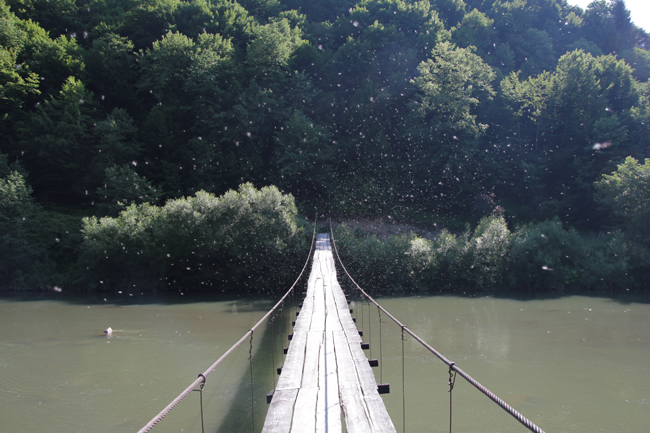 А коли вийшов з намету і побачив річку, то одразу ж запропонував оргкомітету перенести змагання на вечір. По-перше, вода до цього часу мала б очиститися, бо ловити в такому болоті сенсу не було ніякого, а по-друге, пропав мій Юра. Після нарад Степан настояв на тому, щоб не відходити від регламенту. У мене було хвилин 15, тож я в одних шортах і тапочках побіг шукати Юру. З «живого» моста я таки його угледів – він стояв за метрів 500 на злитті Ріки і гірського струмка. З горем навпіл, через болота і хащі я таки добрався до нього і наговорив усякого, активно розмахуючи руками. Часу на підготовку у мене вже не було – що вдалося вхопити в авто, те й узяв. Разом зі Сколівським пішов на пул, де в п’ятницю ловив Макс.
