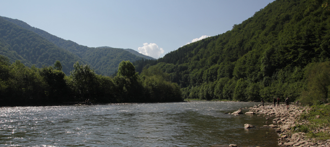 На останній, десятий пул, нас повіз Василь. Учотирьох ми розташувалися на передньому сидінні і намагалися оминати ями, що нам не вдавалося, звісно. Володимир вирішив ловити на одну німфу, що доволі незвично для наших умов, навіть неефективно, але це справа смаку. До речі, німфа була у нього не проста – її зв’язав чемпіон світу Яромір Карафіат… Однак ця німфа ловила лише бистрянок, а от харіуси десь поховалися.