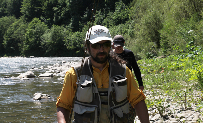 Тим часом хороші результати показав Женя – п’ять харіусів і купа сходів. Сколівський взагалі примудрився зловити харіуса з першої проводки – ото справжній карпатівець. Йому хоч де дай ловити – всюди зловить. Загалом у нього було три риби і кілька кілограмів залишеного на дні вольфраму.