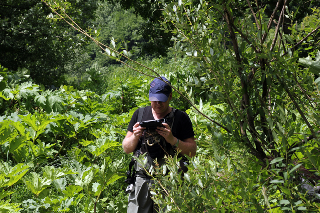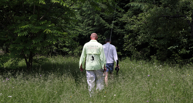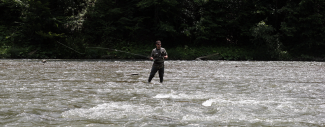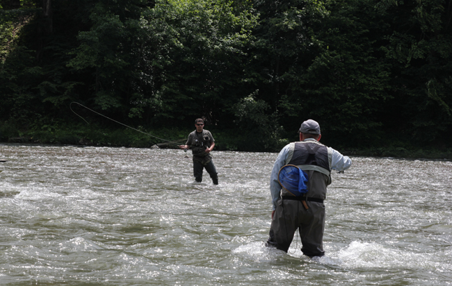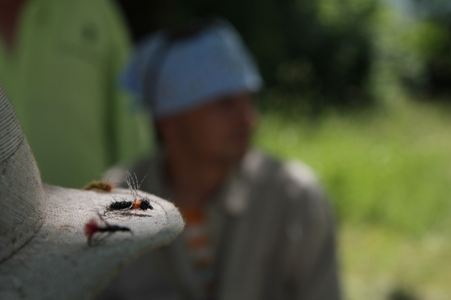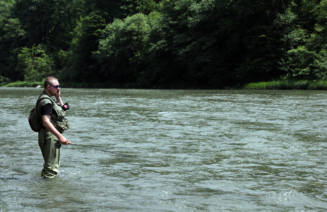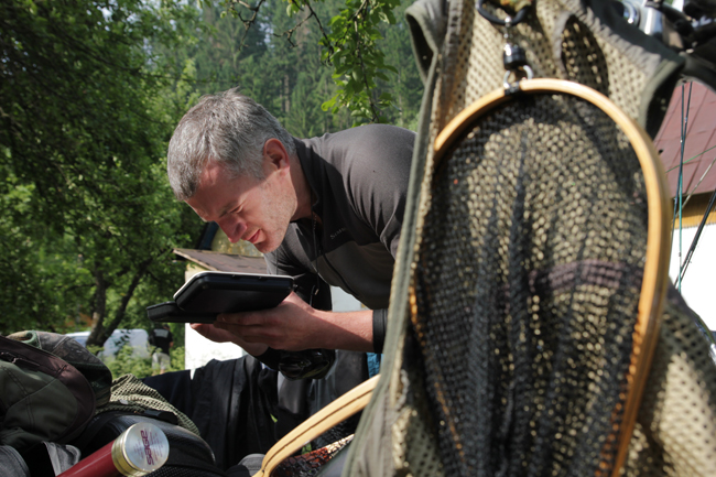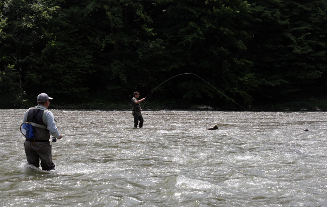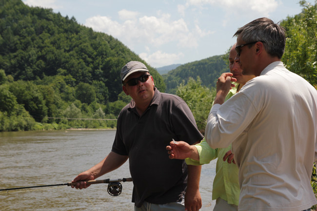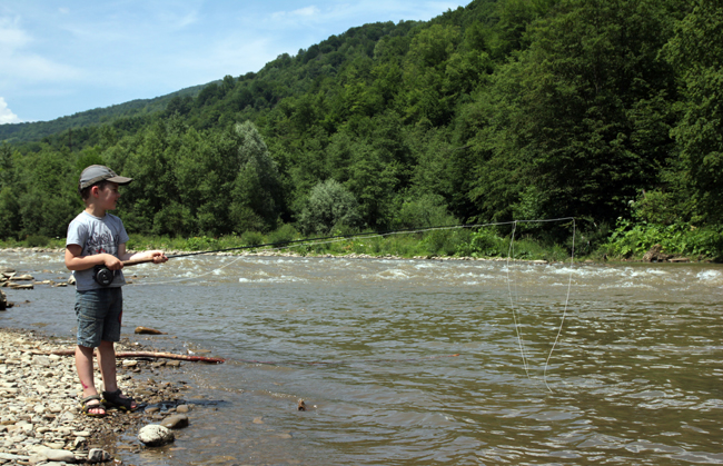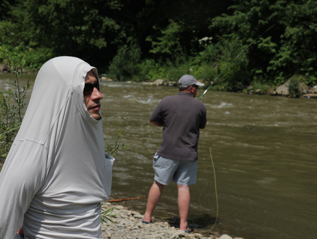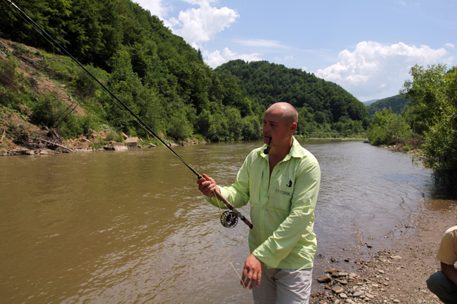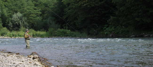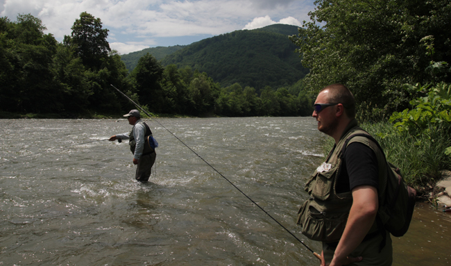 Отже, на територію лісництва ми з Юрою приїхали ще в середу, слідом за Степаном Чехом і його рідними. Якраз покосили траву, яка, мабуть, пахла, але через нежить я нічого не міг понюхати. До цього на Ріці я ловив один раз – в вівторок ввечері, біля Міжгір’я. Окрім бистрянки нічого не було, харіуса я взагалі не бачив. Коли приїхали міжгірські хлопці то запропонували нам показати майстер-клас. Ми сіли в авто і поїхали униз по течії, далеко за ті місця, де закінчуються пули. Іван (той самий, хто бачить крізь воду і впізнає харіуса в фейса) одразу ж стрибнув у воду і став посеред перекату. Ми з Юрою Жиденком, Стьопою Чехом і Юрою Щербатим почали переміщатися по ріці куди повільніше. Іван свиснув – є перший харіус. Звичайно, на суху. Власне, методика лову харіуса у виконанні Івана дуже відрізняється від того, як традиційно ловимо ми. Цей спосіб можна назвати «коротка суха», адже шнур і підлісок практично не лягають на воду. Мушка просто скаче по воді, не так імітуючи смачну поживу для риби, як роздразнює її. Таким чином Іван зловив п’ять пирів, Стьопа винімфував чотири, а ми всі несолоно хлебали. В мене взагалі нічого і ні на що не ловилося. Цікаво, що в коробці Івана було всього 14 сухих мушок, п’ять з яких за його словами «неробочі» – він міг їх комусь віддати. Коли ж Іван відкрив мій флайбокс, то досить швидко його закрив, мовляв, жодної робочої мухи. Ну і з чим я на Кубок приїхав?