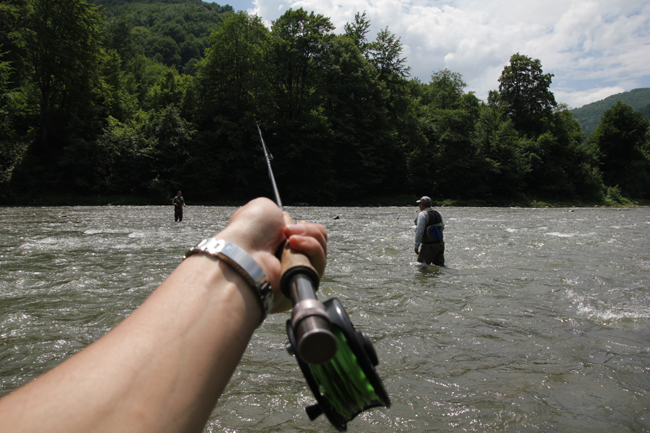 Словом, я не дуже розчаровувався, хоч Юра Жиденко дуже угледів у мені переживання і самоусунення від колєхтіва. Ні, насправді, я просто дуже багато думав про цю Річку. Я намагався проаналізувати все побачене – звідки ловив Стьопа і звідки Іван. Хоч скласти все побачене в якусь одну картину так і не вдалося – я Ріку не розкусив ані на грам. Словом, грузився я – пробував розрахувати майбутні змагання – скільки часу ловитиму на суху, скільки на німфу, дивився як змінюється колір води і намагався угледіти виходи риби. Інформації було багато, але толку з того – нуль.