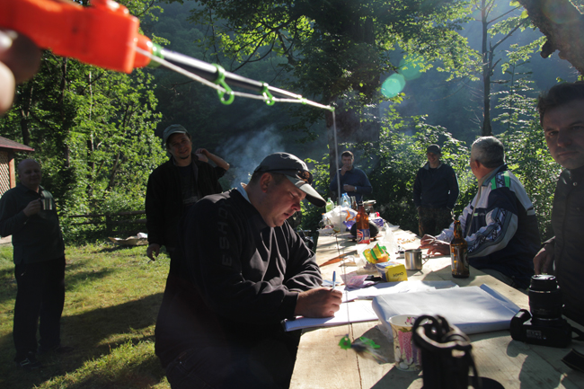 Від сумних думок мене врятували інші хлопці, які почали приїжджати і розпаковуватися. А на вечір четверга Міша Шерлок запропонував поїхати ще раз порибалити. Цього разу до компанії приєднався Женя Федоренко, бо Стьопа з Дімою Петруняком подалися розмічати пули. Цього вечора риба взагалі не ловилася – може хтось і упіймав якогось пиря, але у струмку, а не в Ріці. Таким чином, я зрозумів, що абсолютно не готовий до змагань і дуже хотів, щоб в ранковому турі я був суддею – так буде хоч яка нагода здобути ще дещицю інформації.