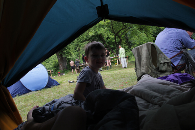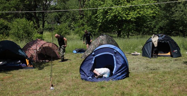 Ну, містечком його назвати важко, оскільки на галявині стояло всього лише кілька наметів. Дехто спав в автомобілі, дехто в приміщенні лісництва. Ну, це як кому подобалося. Я отримав величезне задоволення від перебування в просторому наметі, смачно хроплячи на надувному матраці. Мандрівка Польщею виснажила мене з ніг до голови, тому я відключався в одну секунду і навіть не думав про те, щоб вставати о п’ятій ранку і йти ловити рибу. Я прокидався від вигуків «ЖЕРЕБІВКА!». А от мої сусіди по наметі були, здається, не такі задоволені. Нестор, наприклад, казав, що я щось бурмотів під час сну, а Юра штурхав мене, щоб я не хропів. Певно, це все вигадки і нічого такого не було.