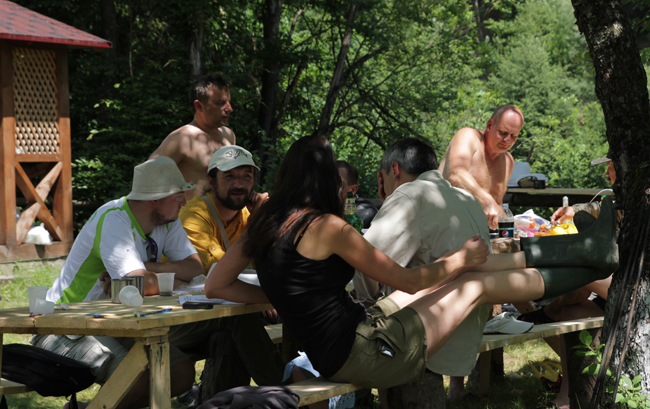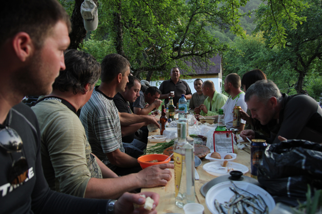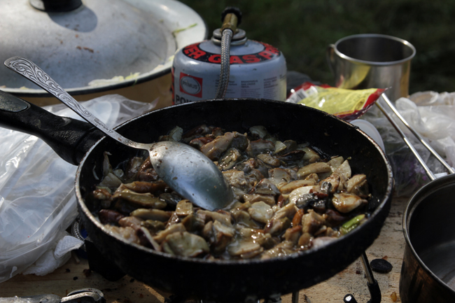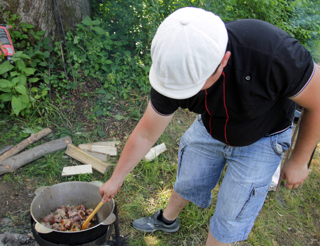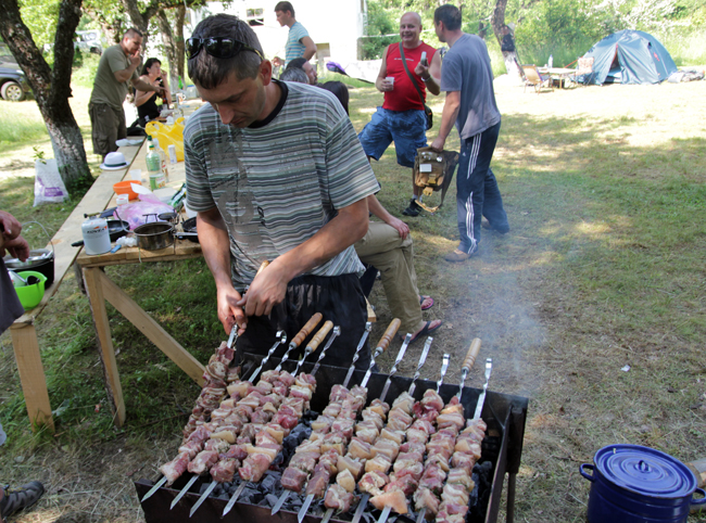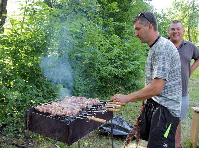 Продовжуючи розповіді про наш нахлистовий хутір не можна не згадати про тих, хто нас годував і поїв. Чесно кажучи, отак відверто і без задніх думок, 300 гривень з учасника і 100 гривень з гостя за всю цю забаву – виглядає сміхотворною сумою. Судіть самі: щодня шашлики в необмеженій кількості, усілякі там дзями-бограчі, сало, балик, шпондер, овочі, каші, картопля, чеське пиво ящиками, горівка, папіроси і все інше. Я впевнений, що хлопці з Міжгір’я виклали немало своїх ресурсів, щоб догодити гостям. За це їм від нас величезна і щира подяка. Було дуже душевно і дуже смачно. Так само подяка організаторам – всі, хто доклався до проведення змагань – справжні молодці!