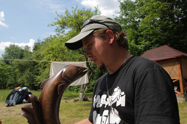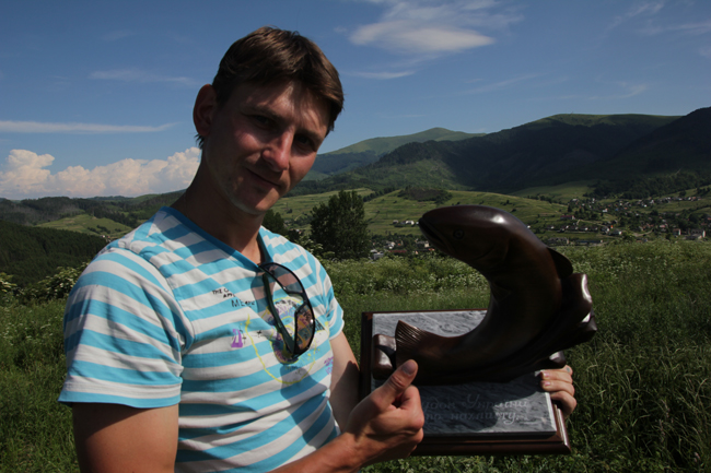 В розпал змагань привезли Кубок. Ну звичайний собі кубок, думав я, з спортивного магазину. Напевно, всі так думали, хто не знав, що це за кубок. А коли Артур Шіц його відкрив, то всі просто охнули. І кожному, абсолютно кожному з нас, страшенно захотілося, щоб він потрапив саме до його рук. Мені також дуже хотілося, але я розумів, що шансів у мене нема. Тому до цього шедевра я навіть не торкався і не фотографувався з ним – все одно ж він мав потрапити до когось іншого. Дивно, що Артур ще переживав – чи сподобається його творіння. Як таке чудо може комусь не сподобатися? Після побаченого Кубка нахлистові призи за перше, друге і третє місце якось відійшли на другий план. Призи дуже навіть достойні (від Strike! та Extreme Expedition), тут нема чого «скігліти»: котушки, шнури, сіммсівські кепки і аксесуари від вчених… Вони дорогі, але їх купити можна. А от в такого Кубка ціни нема…