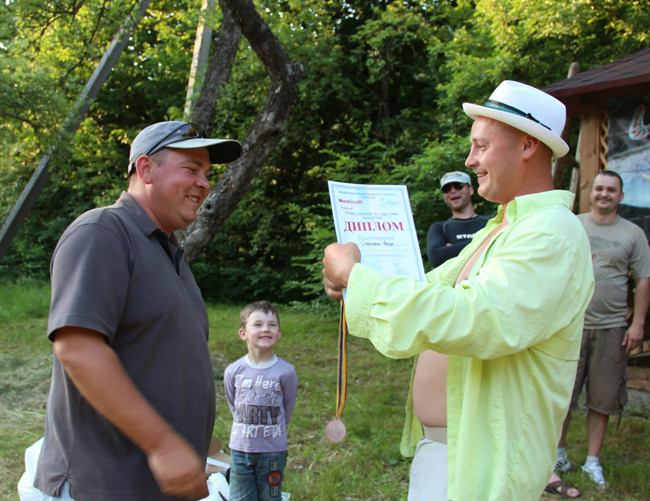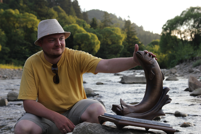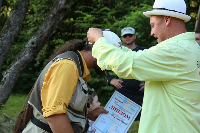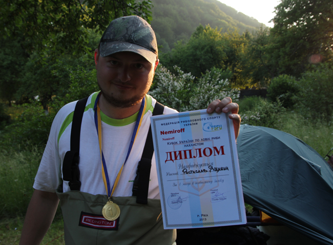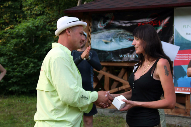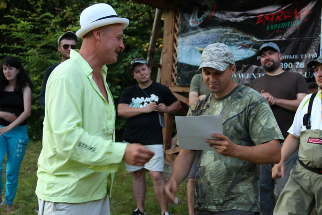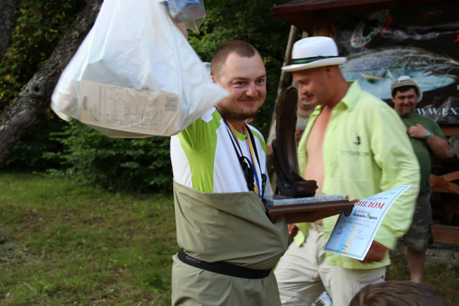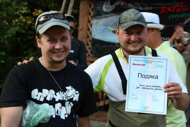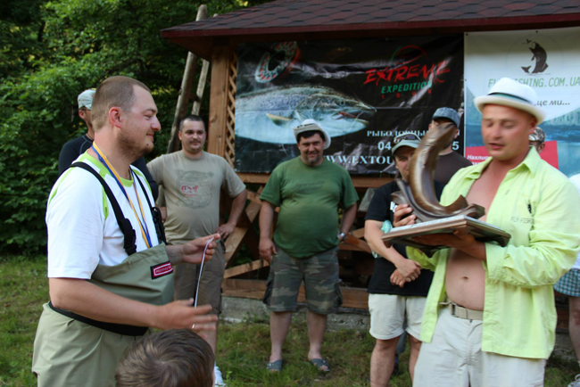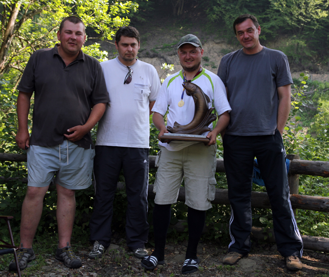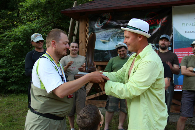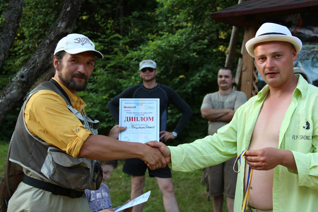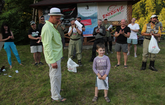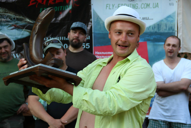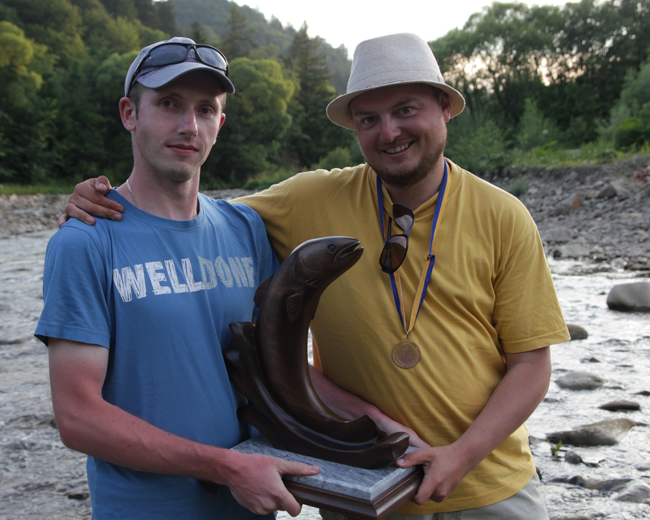 І, звичайно, я ще раз хочу усім вам подякувати за допомогу. Так вийшло, що ледь не кожен, хто зображений на цій знимці, так чи інакше доклав свою лепту у мою перемогу. Наприклад, Ганка показала мені як ловити форель; Юра Гудзь возив мене у своїй машині, за пивом розповідав про тактичні моменти, коли я ще зеленого поняття не мав; Сколівський і Макс допомагали мені вникнути в нахлист, показували як в’язати робочі мухи; Стьопа Чех поділився секретами французького підліска; Діма Петруняк дав поштовх до блогової писанини і можливість розширити асортимент своїх мух, а також вудку, яка й зловила два харіуси; Міша Шерлок і Нестор завжди знаходили час зустрітися зі мною, коли я приїжджав в їхні краї, возили на секретні та улюблені місця; Діма Поплавок розповідав масу історій про форель та харіуса, як, коли і на що їх ловити; Артур Шіц зробив такий Кубок, за який варто було гризти землю; Юра Жиденко морально налаштовував мене; Іван з Міжгір’я дав корисні поради щодо мух та місць; Василь з Міжгір’я готував надзвичайно смачно, що давало сили махати шнурами; Леся Чех постійно підтримувала і говорила, що зробила на мене ставку, а їй говорив, що це вона даремно задіяла)); мій Юра, який провтикав нагородження – це взагалі окрема історія: ми з ним півсвіту об’їздили; Богдану Цебрику, діяльність якого мене надихає, нарешті, Женя Федоренко у 2005 році написав статтю про нахлистовий виїзд в Карпати, яка мене страшенно захопила і яку перечитав вже сотню разів… Цей перелік можна продовжувати. Дякую вам усім і щиро – за добрі і теплі слова, за жарти, за усмішки, за підтримку, за шашлики і Гамбрінус, за дзяму і сало. Я неймовірно радий, що маю можливість бути разом з вами, сидіти за одним столом, говорити про близькі душі речі, ловити на одній ріці, запускати і відпускати рибу.