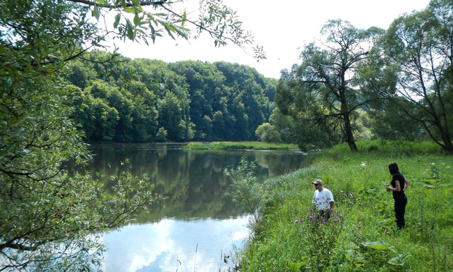 Далі у мене – по нулям, а Гануська щось тягне час від часу. Починає сутеніти, ми вирішуємо повернутись на плесо біля віати, щоб половити там при останньому світлі дня. По дорозі зустрічаємо польського риболова Грегожа, який прямує в нашому керунку, щоб зайняти пост на краю обширного глибокого плеса з майже стоячою водою, де живуть головатиці. У руках у нього вудка 7-8 класу, на грубому тіпеті (1х-2х) прив’язана імітація бичка. Він добровільно дарує Ганні кілька мух, займає своє місце на воді, і скоро ми втрачаємо його з виду. Сутеніє.