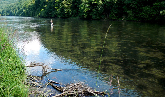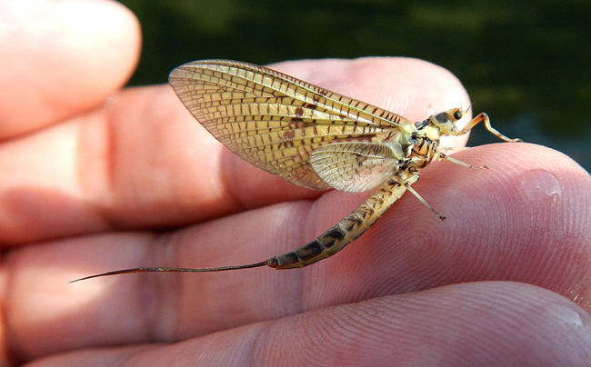 Знайшовши один з небагатьох під’їздів до ріки (інший був малопрохідний, а на ще одному стояло аж 4 намети – не уявляю як їх власники там жили серед такої кількості комарів і гедзів), швидко вскочили у вейдерси і розійшлись по воді. Під берегом активно мігрували оранжево-сірі бокоплави, на воді можна було спостерігати виліт поодиноких великих світлих одноденок Ephemera – не то жовтих, не то зелених Дрейків.