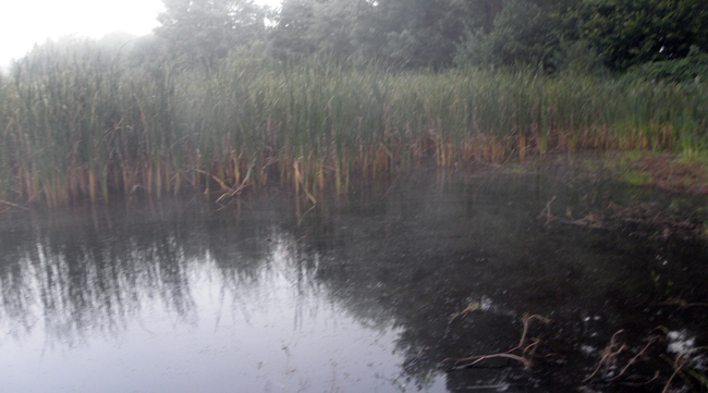Чи то від посухи, чи озеро спустили (популярна практика в кінці 90-их), але на нас дивилася некрасива калабаня, геть поросла очеретом.