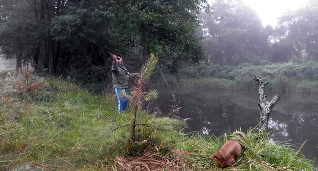 Сергій закинув мою стареньку бамбукову вудку, а я хвилин 10 просто дивився і згадував старі часи. Не хотілося навіть діставати мух, але малий все ж умовив – 3 проводки ред тага прогнозовано не дали результату.