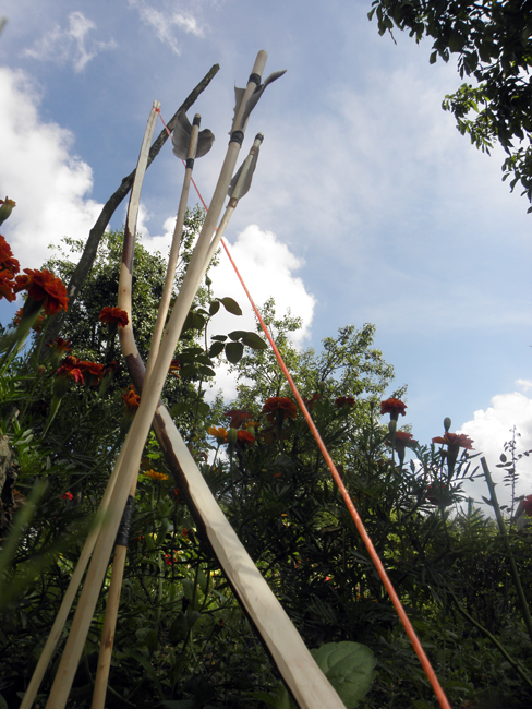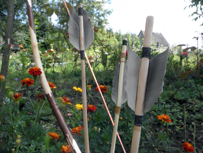 Поки був обід трішки подуркували – наробили стріл та й лук незлий. У мене колись такого не було: з ліщиною треба вміти працювати, а від необережного руху ножем під час виготовлення стріли, на лівій руці ще досі красується величенький шрам.