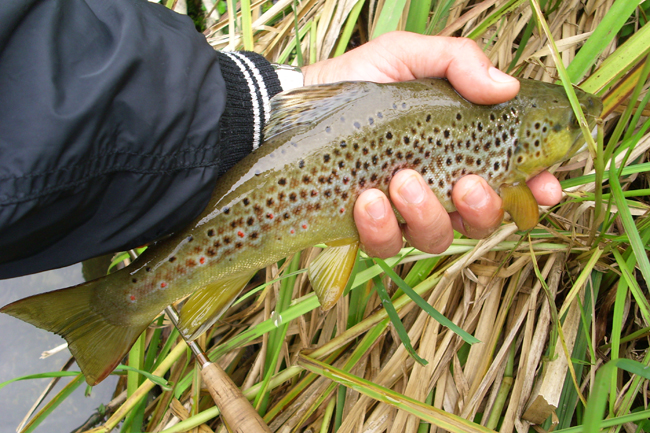 По здешним меркам она средняя, но тем не менее это мой очередной личный рекорд. Браун траут (brown trout) 35 см. Выглядит она точно так же как и наша пеструшка, разве что немного желтее. И то я не уверен, что есть какая-то разница.