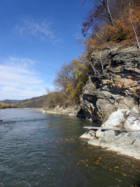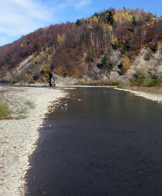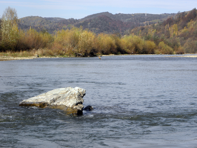 Біля відомої під скельної ями переходжу річку на інший бік – спершу зривається хороший харіус, а потім з того ж місця виловлюю трохи меншого. Згодом ще двох – все на вольфрамову німфу.