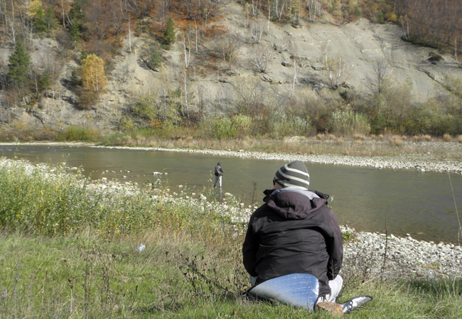 Навіть попри такі експерименти риба ловилася дуже активно. Працювали обидві мухи, крім того харіус регулярно стрибав на сухарика, але жодного разу його не зловив. Пориви вітру просто кидали ним у різні сторони. Тим часом Ганна теж озброїлася французом, але ловила «на знос». Без додаткового індикатора мені теж довелося б так ловити.