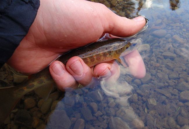 OLYMPUS DIGITAL CAMERAЦя ріка теж була чистою, а у мене нарешті з’явилося відчуття того, що ми нарешті щось та й упіймаємо. І справді, не встиг Геник пройти сотню метрів уверх по течії, як Арсен вже тримав підсак напоготові.