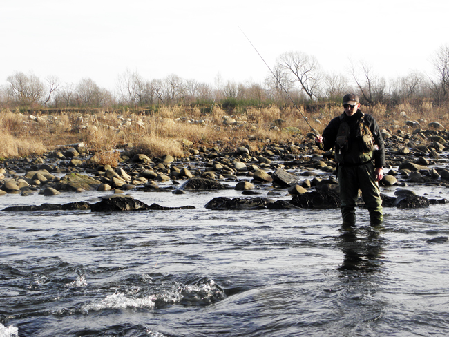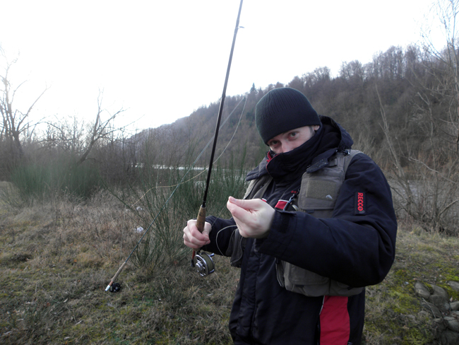 OLYMPUS DIGITAL CAMERAЦікаво, що перед тим, як зійти до річки, Арсен спитав чи є якась робоча муха на цей час. Зважаючи на те, що у мене зовсім нема досвіду у зимовий час, я не мав що відповісти. Натомість Геник запропонував Арсену «принца» з моєї коробки. Власне, «принци» – хороші мухи, але ловив на них я в травні і мав дуже хороші результати. Але щоб зимою ставити таку здоровенну муху… у мене навіть думок схожих не виникало.