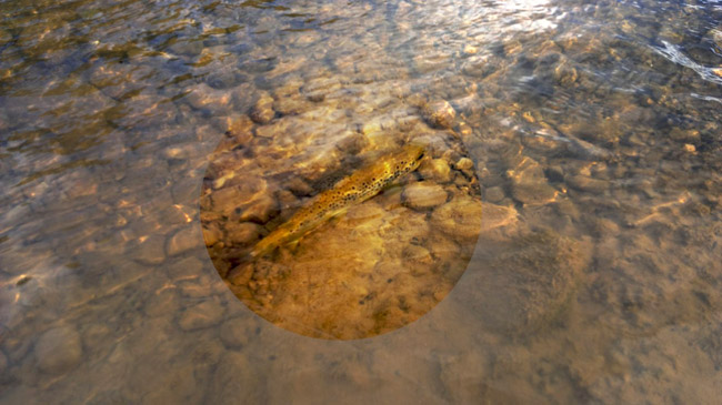 Перший кілометр річки залишився безрезультатним. Ця ділянка і влітку не радує високою результативною потужністю. Перекат. У жовтні на ньому я зловив непоганого розміру форель на CDC-емерджер. «Тут зараз буде потужний пструг» – сказав я і зайшов у воду. Перша проводка – тихо. Мені не сподобалось, як я провів німфи, вітер здув снасть, коли я старався її закинути. Кидаю другий раз. В цьому місці річка повертає ліворуч, я кинув із зовнішньої сторони перекату, проводка, сильний удар, крик «Є, бляха! Я тобі шо казав?!».