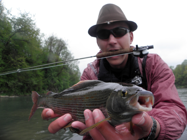 З другого разу знаходимо з’їзд з траси, пробираємося до річки, дорога явно бажає кращого, але Бусятко впевнено несе нас до Віати. Влітаємо в вейдерси, нашвидкуруч перекушуєм і на річку! На ямі, де минулого року мав здибанку і незакінчені справи з тайменем стоять поляки і періодично таскають непоганих пстружків. Ростик зміщується вліво і практично відразу ловить гарного харіуса на глибині сантиметрів з 10.