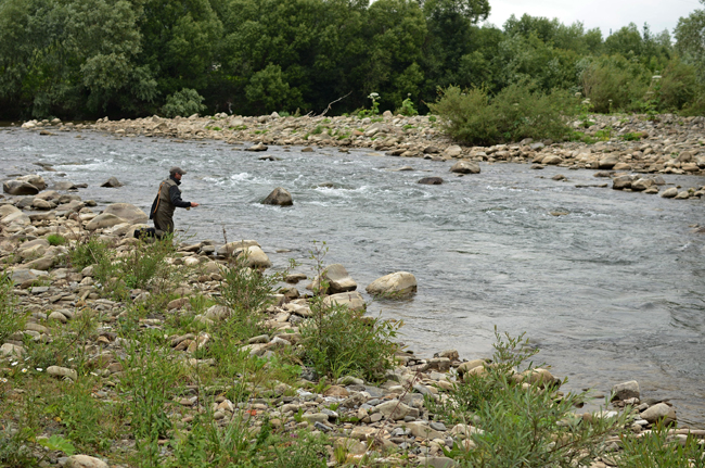 Спав я добре, прокинувся о шостій, без будильника. Побродив порожньою базою, одягнувся в вейдерси і з нетерпінням чекав на жеребкування. Оскільки нижні пули я не розмічав, то мені байдуже було де ловити. Випав 11 сектор, там де в п’ятницю Володя Немцев з Чернівців зловив два харіуса. Його судив Арсен, який сказав, що активної риби на території більше, аніж достатньо – у Володі було досить багато виходів, але трохи не склалося з реалізацією.