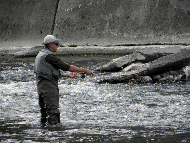 Протягом етапу у мене була одна проблема – після кожної риби, доводилося сушити муху із CDC. Узявши гачок за колечко, я прополіскував пір’я у воді, після чого інтенсивно продував її аж до того моменту, коли голова починала паморочитися. Робив це без фанатизму, бо можна було послизнутися і скупатися, що в мої плани не входило. Після цього я робив швидкі холості закиди, які остаточно вибивали з мухи всю вологу. На таку процедуру у мене йшло дві хвилини. Зважаючи на те, що загалом на суху мушку я зловив 14 харіусів, можна підрахувати, що півгодини часу йшло виключно на просушку.