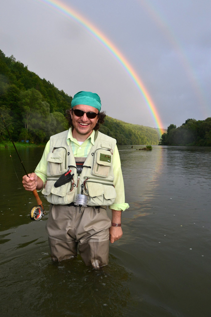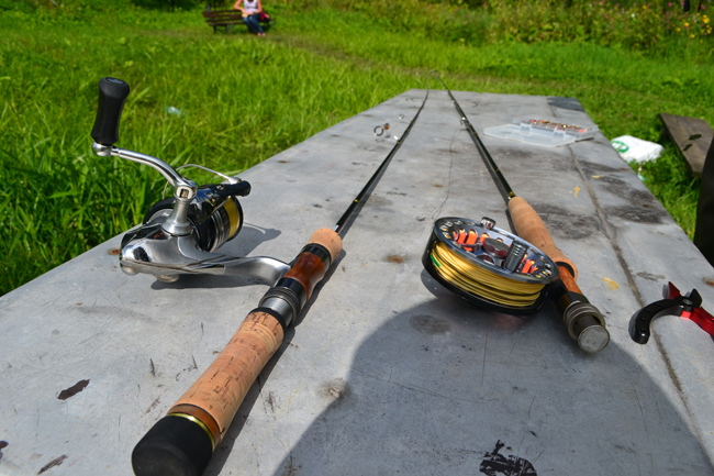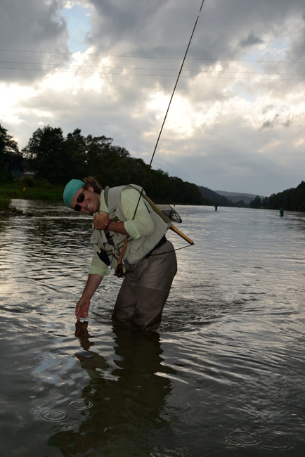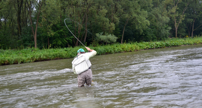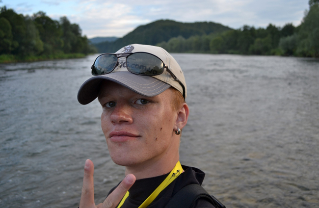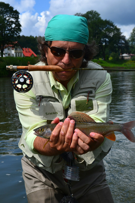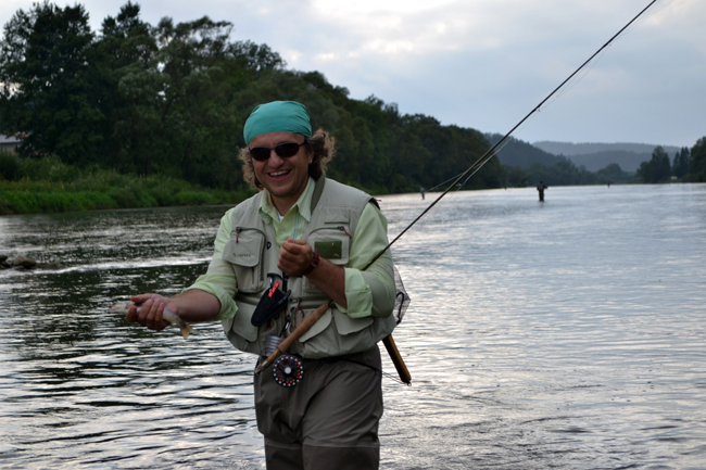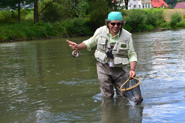 Ну що можу сказати, Сян мене вразив: широкий, в міру швидкий, змінна фактура дна, і типи рослин на дні. От був би я форелю, раєм вважав би саме річку Сян. І ще тато з полегшенням видихнув – не пригодяться нам навики карпатського альпінізму. Вечір понеділка був проведений за бокалом хорошого вина і… станком з мушками, ми готувались до великої гри – тато по нахлисту, я по спінінгу…