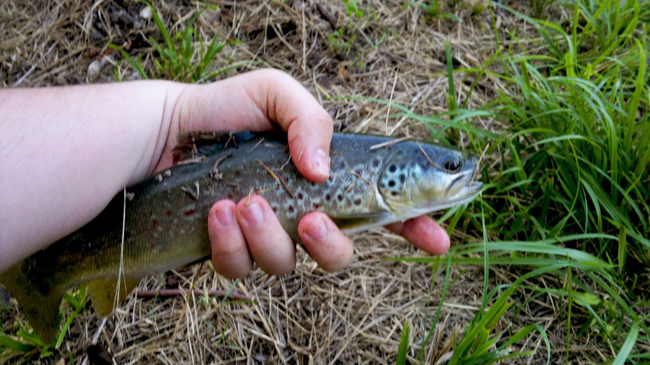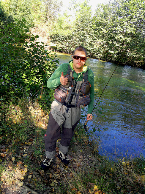 Перша година риболовлі не дала результату. Річка після повеней трошки помінялась, відносно того, що я пам’ятаю з минулого року і місця, які давали результат тоді зараз показали мені довгий середній палець з необстриженим нігтем. Я з’їв бутерброд (булка з кунжутом, масло, сир, помідор і трошки перчику) тай відправився на перекат, єдиний який я бачив там (на даний момент я відвідав тільки невеликий кусок річки). Він теж трошки змінився і обмілів. Проводка, удар, зацеп… думаю камінь. За мить камінь якось дуже різко почав маневрувати річкою… ЙОФАНА БАБАЙ!!! )))