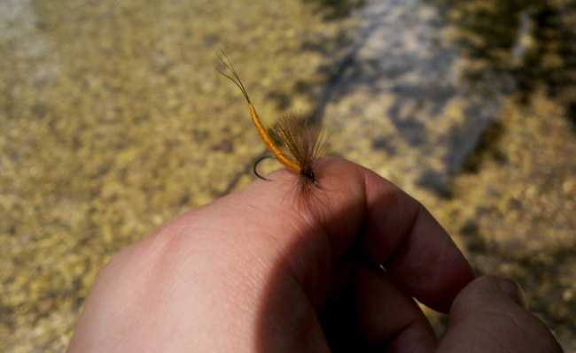 Минулого року я теж був тут і рибалки складалися набагато веселіше. Річка дуже цікава. Цікава вона в першу чергу своєю, так би мовити, хрестоматійністю. Риба зранку і на протязі дня категорично відмовляється клювати на сухі мушки і не подає признаків життя на поверхні, натомість клює з дна. Ближче до вечора починає брати німфи у вищих слоях води (напевно тоді вона бере і мокрі мухи, однак я не фанат мокрих, тому не пробував), а десь з сьомої вечора і до сумерків харчується з поверхні, при чому не просто харчується, а річка оживає, форелі вискакують на поверхню, як ті коні і ти знову починаєш відчувати радість життя, як це востаннє було в 15річному віці. Риби я ловив не особливо багато. Працювали тут типові карпатські мухи. Фазантейли з оранжевими елементами, шоколадки, Несторові німфи, німфи з чорного і коричневого боді квілсів та інша бадяга такого плану. Я ловив тільки невеликі форелі розміром 24-35 см.
