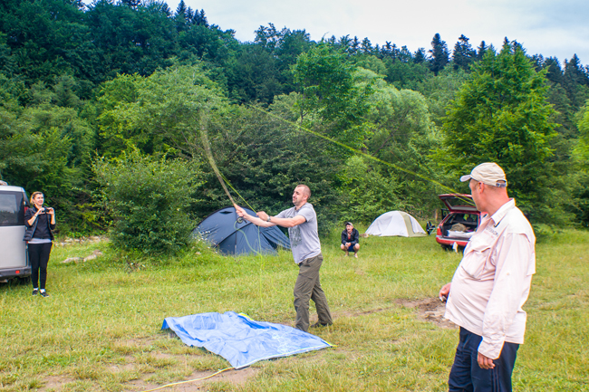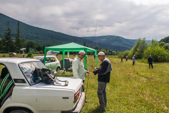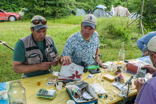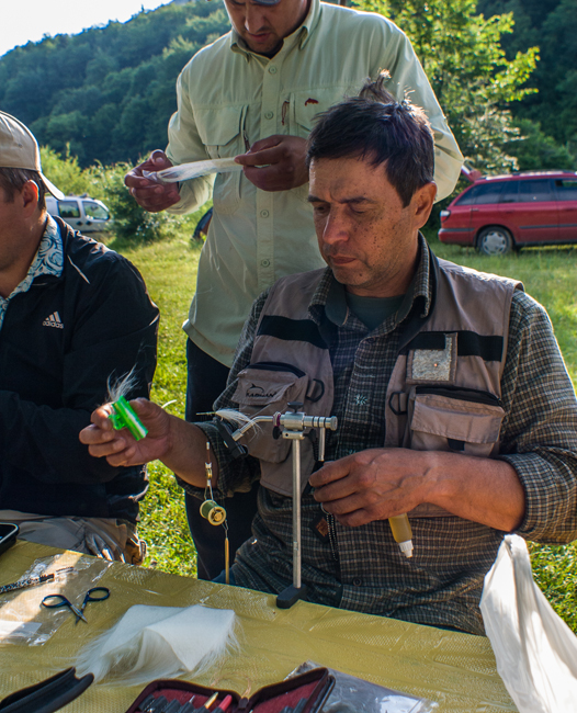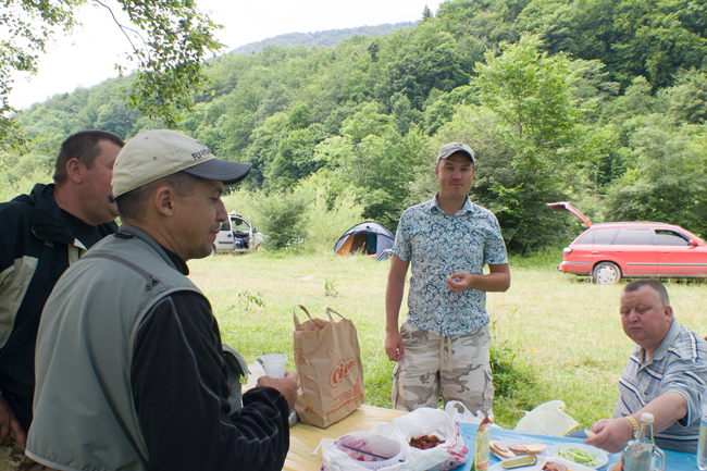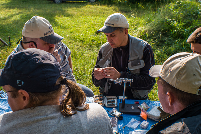 Цього разу на навчальний семінар приїхало 20 учасників, переважно з центральних та західних регіонів нашої країни. Трохи менше було гостей – тих, хто приїхав просто побути в дружній компанії, порибалити, поговорити і відпочити від міської суєти. Щодо інструкторів, то їх вистачило на всіх. Кожен з тих, хто взявся виконувати не просту місію вже має за своїми плечима близько 10 років нахлистової науки, а це, погодьтеся, не мало. Дмитро Петруняк (він же організатор заходу), Дмитро Голенков, Богдан Цебрик, Іван Повхан, Степан Чех, а також Олексій з Києва – усі вони присвятили багато часу на в’язання мушок та тонкощам закидів.