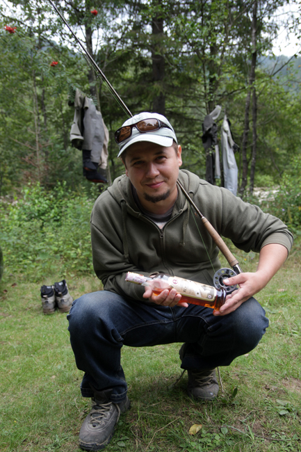 P1100365Ладно, мене знову на лірику потягнуло. Я був на Свічі в червні, перед Кубком Карпат і досить непогано відловився, особливо в ранкові години. Знайшов парочку хороших німф, які і приносили основний результат. У кожній більш-менш пристойній ямі сиділа риба, як правило, не одна. Головне було – точно кинути їй мушку під носа, бо бігати за нею риба не хотіла.