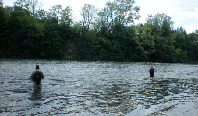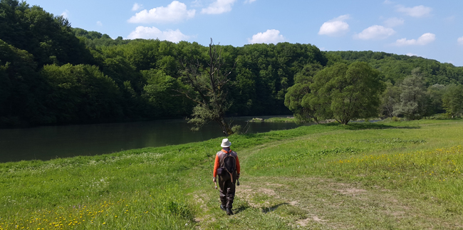 Якось спакувавши усе в автівку ми рушили польовою дорогою униз по течії. Їхали поволі, зрідка зачіпаючи дно об каміння. Зрештою, звернули ліворуч і зупинилися там, де планували. Ми були самі – лише по іншому березі лазило троє мухарів. Як виявилося, то були Павел з французькими гостями. Нам же залишилася доволі продовгаста ділянка, яка була доволі зручною. Так, вода висока і тут, але принаймні без шаленого потоку. Склавши вудку та поставивши дві німфи, стаю на самому початку перекату і одразу ж виманюю форель на 25 сантиметрів. Володя розташувався трішки нижче, Арсен ще нижче, із сухою мухою.