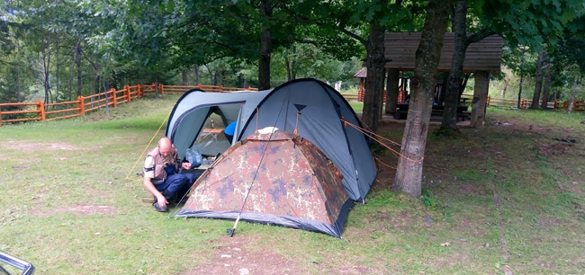 Найкозирніше уже зайняте, в трикутнику кленів свій здоровенний намет розкинули хлопці з Рогатина. Нам же залишається сусідня територія.