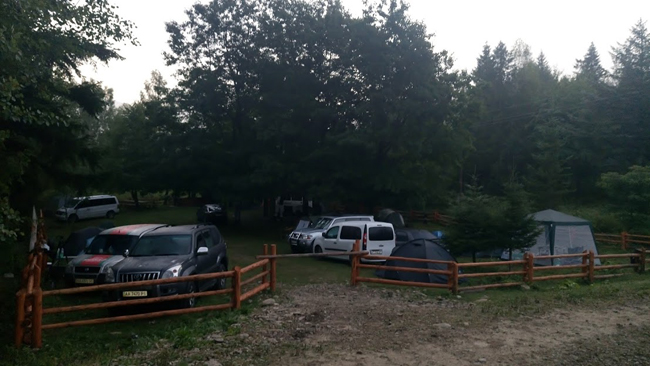 До табору залишається пару кілометрів – за хвильку ми вже завертаємо у браму, потім на міст і ось – ліворуч розкинулася красива галявина. Тут є бесідки, столи, мангал, місце для наметів.