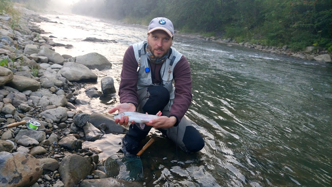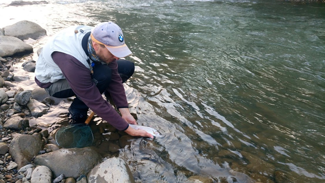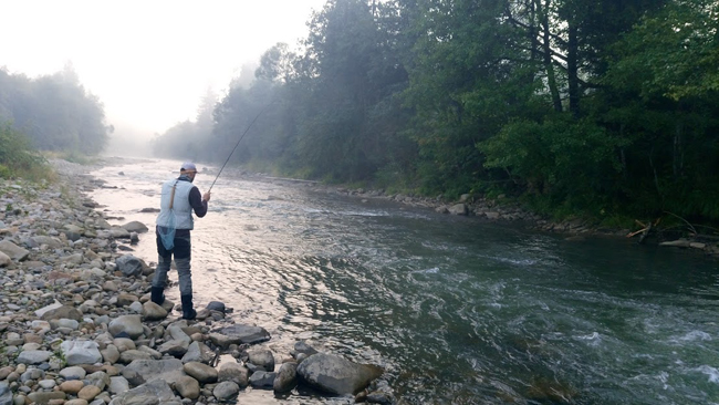 Прийшовши до ями, показав йому муху і вже за кілька хвилин Діма боровся з крупним харіусом.