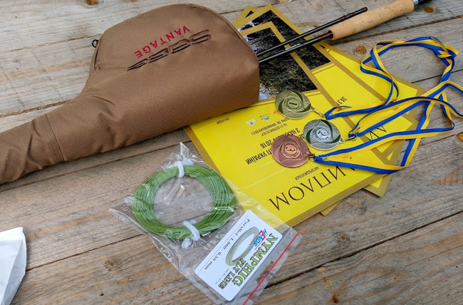 Щодо призів, то спонсори не поскупилися. Генеральний спонсор чемпіонату України з нахлисту компанія Extreme Expedition презентувала в якості головного призу вудку Sage Vantage, два шнури від «вчених», а також величезний набір різноманітних матеріалів для в’язання мушок. Компанія Strike! також презентувала вже готові пакети із матеріалами, зокрема й власного виробництва. Магазин «Нахлист на Шулявці» виділив переможцю новенький шнур від Hends, сертифікований для змагань. А ще переможці отримали спеціальні набори хендмейдних шнурів від гостя з Молдови Кості Дегтярьова, а також набір милих дрібничок від нього ж.