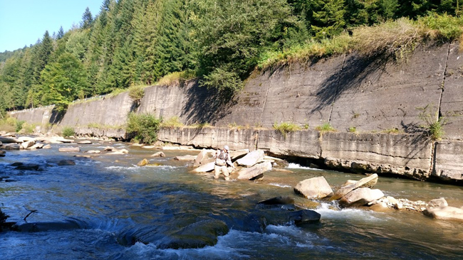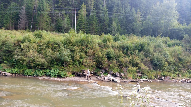 DSC_0178Перше, що ми побачили – величезна кількість людей, які розташувалися на галявинах поблизу. Виявилося, що розмічена ділянка – традиційне місце відпочинку. Як цього можна було не побачити і не прорахувати під час розмітки, для мене залишається загадкою. Цілком логічно, що цю всю територію слід було зробити буфером, натомість перший пул розмітити на рівній ділянці, що розташувалася у верхній частині течії. Більше того, це місце не підходить під пул, зважаючи на те, що від «точки» до «точки» слід було продиратися через чагарник на пустелю із каменів. Можливо, у п’ятницю ввечері, поки не приїхали люди, тут ще можна половити, але точно не в суботу.